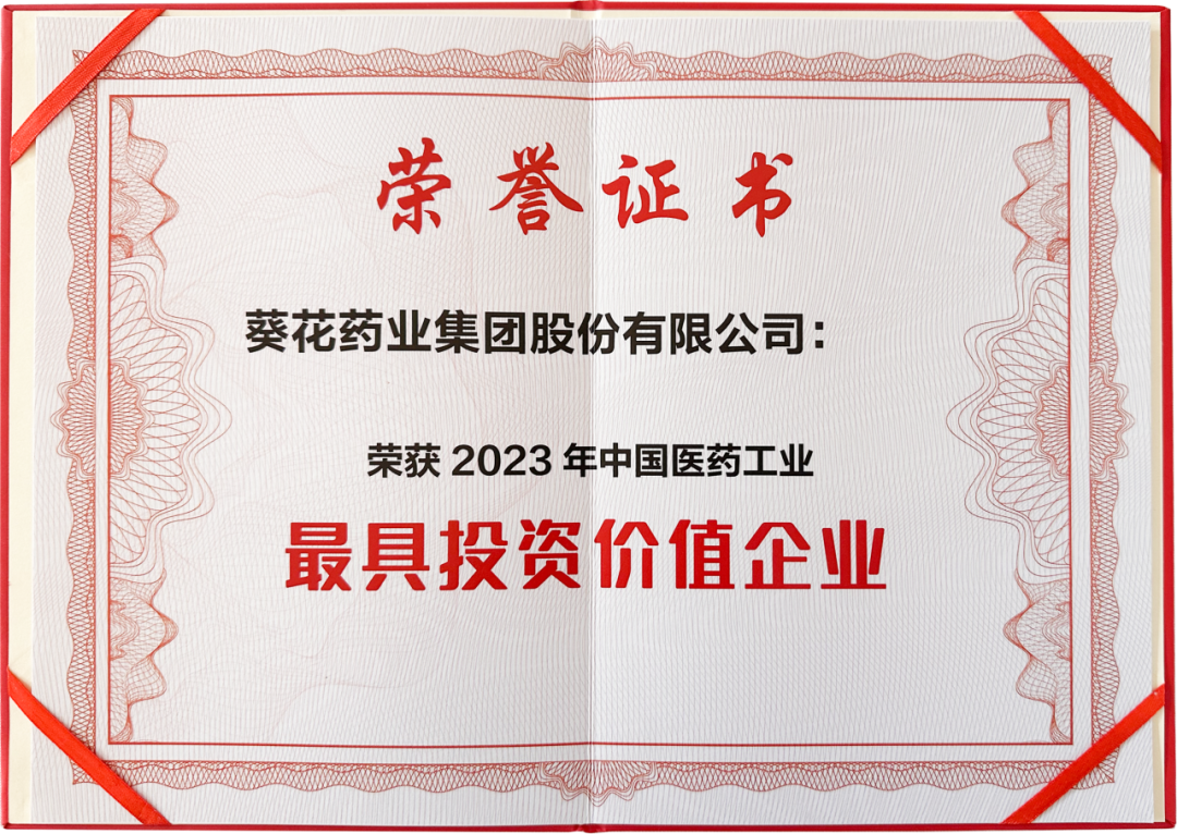 葵花藥業(yè)獲評“2023中國醫(yī)藥工業(yè)最具投資價值企業(yè)”